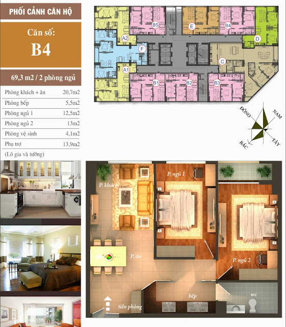- Mã căn hộ diện tích 66 m2 ( thông thủy ) : B1, B3, B4