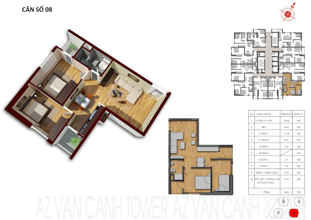 - Toà A2 và B2 Mỗi sàn có 8 căn diện tích từ 63,1m2 đến 91,7m2. và 3 thang máy.